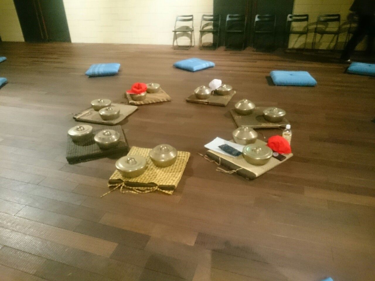 3番目の『IAMAS校歌』はマルガサリの出番。これは、7人の奏者の前に、ボナンという楽器が2個ずつ置かれた、超小編成の作品なのですが、あるルールに従って演奏をしていきます。ところが、このルールが、けっこうミスを誘発するように出来ていて、リハーサルで完璧に出来たところが本番ではうまくいかなかったりと、うーん、自己採点は厳しいものになりました。